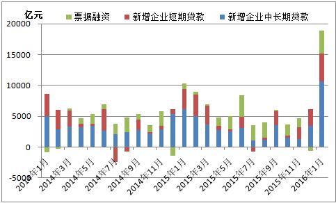 圖二:企業(yè)中長期貸款、短期貸款、票據(jù)融資增量走勢